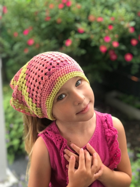 Setze ein modisches Statement mit diesem bezaubernden Kopftuch für den Sommer! Es wird luftig in einem hübschen Muster aus 100 % Bio-Baumwolle (GOTS-zertifiziert) von mir gehäkelt. Diese besonders schöne und weiche Baumwolle in einzigartigen Print-Farben macht es zum idealen Begleiter sowohl für Kinder als auch für Erwachsene in den warmen Monaten. Durch seine lockere Verarbeitung schützt das Kopftuch vor der Sonne, bleibt dabei aber luftdurchlässig und verhindert so Schwitzen und Hitzestau. Viele Kinder finden es sogar angenehmer als herkömmliche Sommerhüte. Jedes Stück ist ein Unikat, da die Farben immer einzigartig fallen.