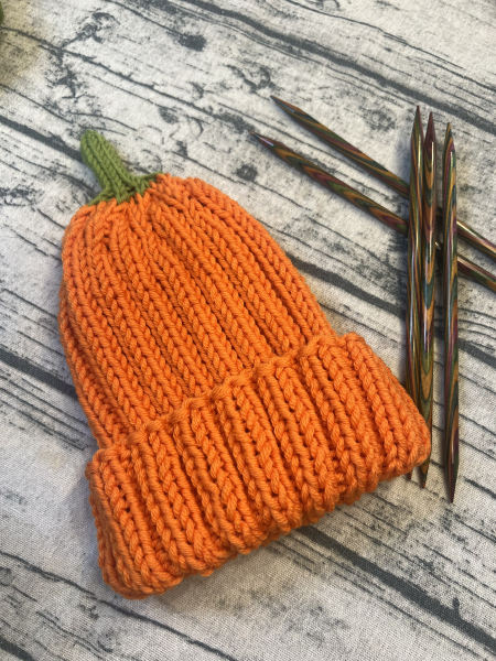 Handgestrickte Kürbismütze – nachhaltig, warm & einfach zum Verlieben