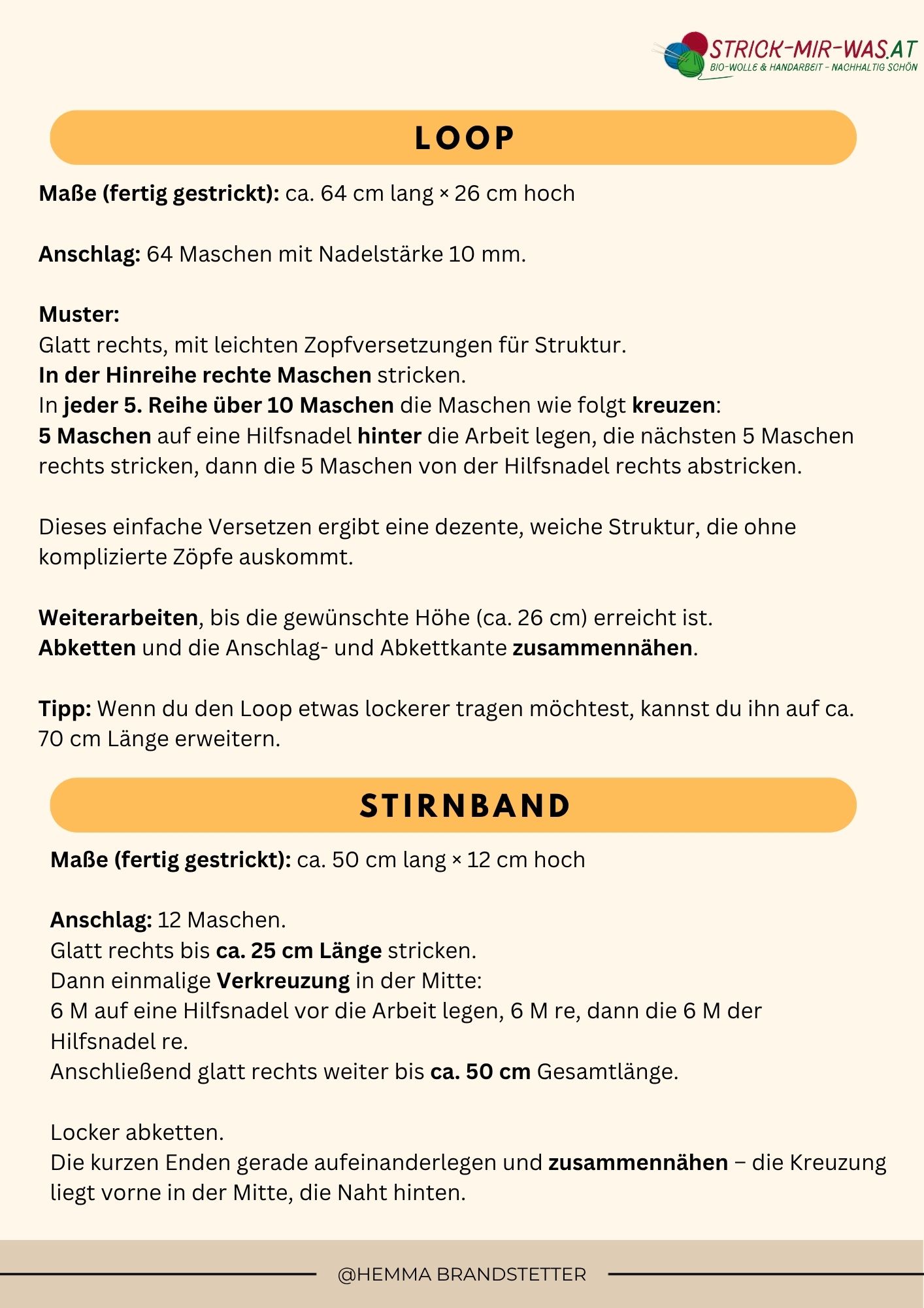 Anleitung Stirnband & Loop Set Maximo, Bio-Merino (GOTS-zertifiziert)