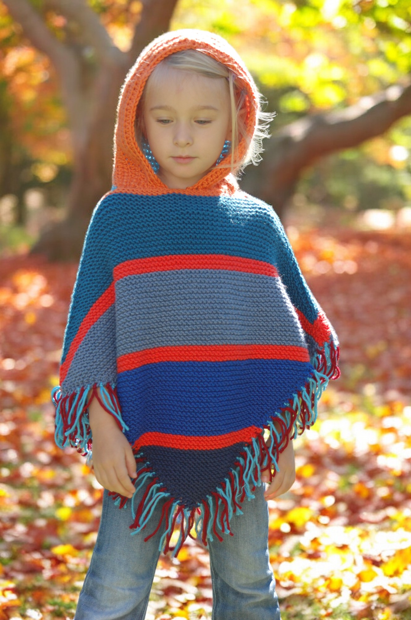Der Poncho wird standardmäßig mit einer Kapuze für Kinder gefertigt. Ihr könnt aber auch einen dicken Rollkragen statt der Kapuze wählen. Gebt diesen Wunsch einfach in den Anmerkungen an.